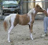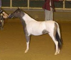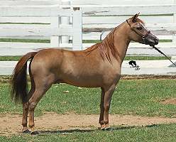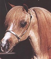 Arista’s Choctaw Charlie, at only 30.25” carries himself with a jaunty elegance and attitude belying his size. Virtually unshown, Charlie, foaled in 1993, is one of the finest Roan Ranger sons in the country today. You can guess his breeding at a glance, and he passes along the much sought after Gold Melody Boy ‘stamp’: beautiful head with a tiny throatlatch, smooth level topline, long upright neck, and exquisite overall balance – the true horse in miniature. Charlie is also poetry in motion, and one of the kindest stallions I have had the pleasure to know.