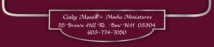 Cherokee represents the dedication to quality that has been the hallmark of my breeding program from its inception. She merits her own page, so please visit her there to see her contributions –14 foals, many with World titles, more than 40 ‘grandfoals’ and a slew of great grand foals - to Mocha Miniatures and to the Miniature Horse breed.